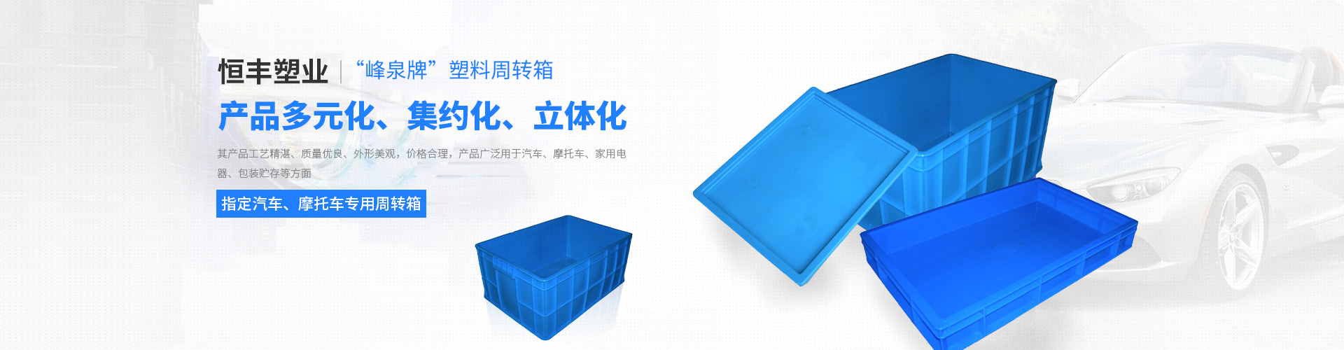 無錫市恒豐塑業有限公司是“峰泉牌”塑料周轉箱、塑料筐、塑料托盤、物流箱、標簽架等產品專業生產加工的公司,擁有完整、科學的質量管理體系。無錫市恒豐塑業有限公司的誠信、實力和產品質量獲得業界的認可。歡迎各界朋友蒞臨參觀、指導和業務洽談。本公司占地面積12000平方米,固定資產壹仟萬元,擁有1600克至10000克等注塑設備,設備先進。年生產能力達2000噸制品,企業技術力量雄厚,專業工程技術人員占全廠總人數的35%...
